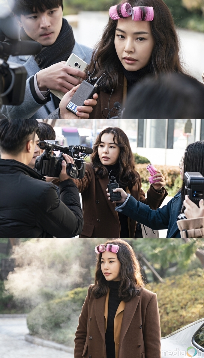 공개된 사진 속 이하늬는 카메라 세례를 받으며 법원에 출근하고 있다. 몰려드는 취재진 앞에서도 이하늬는 당황하지 않고 여유롭게 그들을 상대하고 있는 모습. 특히 심각한 상황과 어울리지 않는 이하늬의 헤어롤 비주얼이 시선을 강탈한다. 추궁을 당하는 상황에도 당당, 뻔뻔한 이하늬의 모습은 박경선 캐릭터의 범상치 않은 매력을 예고한다.