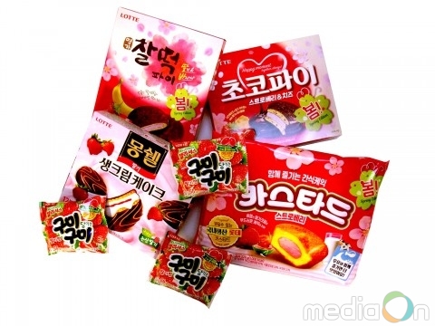 롯데제과는 봄 시즌 한정판 제품으로 제철 과일인 딸기를 활용한 신제품 ‘몽쉘’, ‘카스타드’, ‘초코파이’, ‘찰떡파이’의 딸기맛 4종과 젤리셔스 ‘구미 당기는 구미 딸기’를 출시했다고 27일 밝혔다.