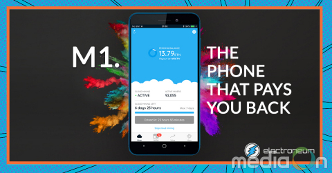 M1은 일렉트로니움의 획기적인 클라우드 채굴 기술이 접목되어 있어 사용자들이 스마트폰 앱을 통해 간편하게 암호화폐를 채굴할 수 있다. 소비자들은 중고 휴대폰 가격인 80달러에 구글 GMS 인증 스마트폰 M1을 구매할 수 있다.