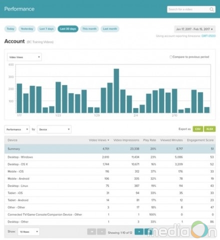 한편 브라이트코브의 대표 솔루션 중 하나인 비디오 클라우드는 동영상 호스팅 및 퍼블리싱을 위한 플랫폼으로 이를 이용하면 콘텐츠의 신규 및 고유 시청자, 시청 환경, 시청 시간, 시청 장소, 트래픽 소스 등 자세한 데이터를 확인할 수 있다.