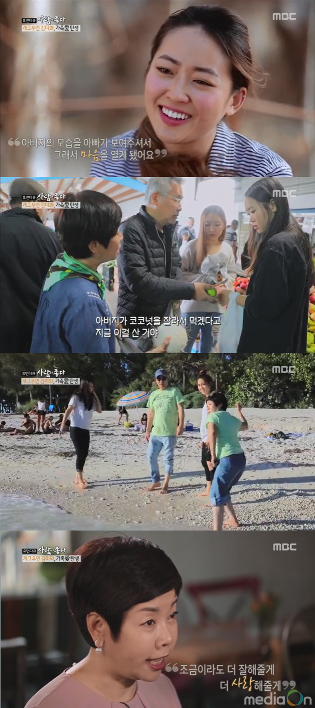 이날 ‘휴먼다큐 사람이 좋다’에서는 개그우먼으로 최고의 전성기를 누렸고, 이제 새롭게 꾸린 가족을 위해 최선을 다하는 김미화의 모습이 공개됐다. 윤승호와의 재혼을 결정하기까지 어려움도 많았다. 그러나 서로의 상처를 감싸 안고 위로하는 진심어린 모습에 진정한 가족으로 거듭난 이들의 모습에서 잔잔한 감동을 느낄 수 있었다.