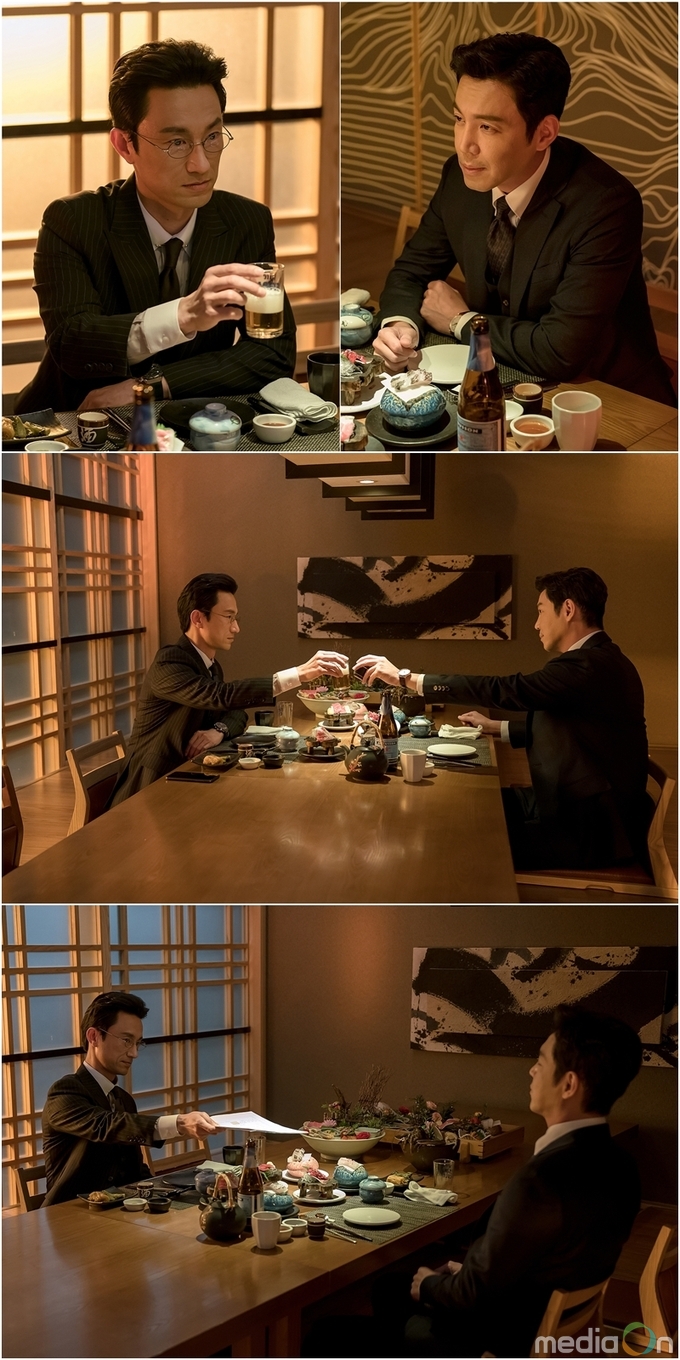 먼저 잔을 들고 건배를 제의하는 선민식에 이재준도 술잔을 들고 맞부딪치는 장면에서는 끊어졌던 두 사람의 검은 커넥션이 다시 가동됐음을 짐작케 한다. 특히 마지막 사진에서 선민식이 이재준을 향해 내민 서류에는 과연 어떤 내용이 적혀있을지 호기심을 자극하고 있다.