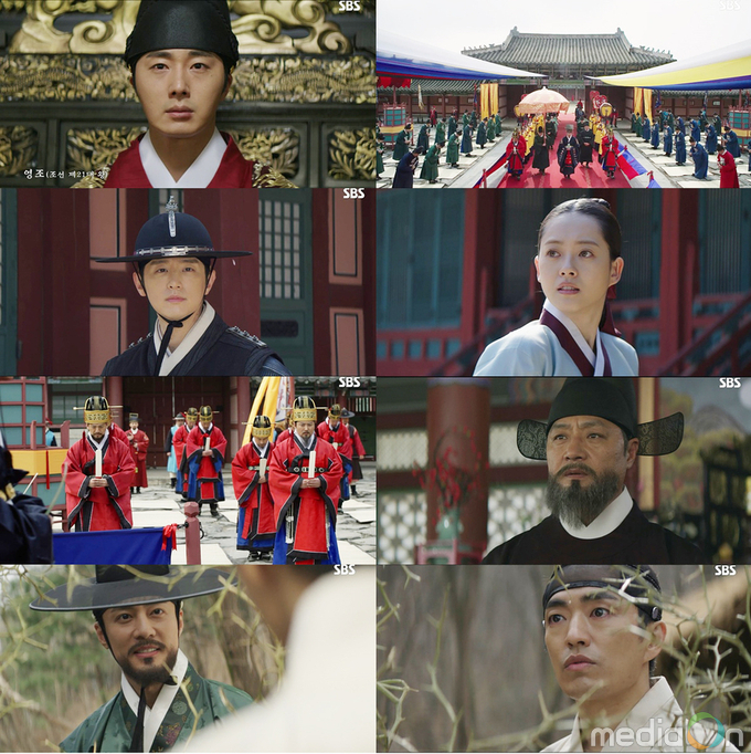 이날 방송분은 왕세제 이금(정일우 분)이 세상을 뜬 경종(한승현 분)으로 인해 슬퍼할 겨를도 없이 소론의 조태구(손병호 분)로부터 “세제의 억지와 탐욕으로 경종이 승하했다”는 이야기에 고민에 빠지면서 시작되었다. 하지만 그는 이광좌(임호 분)로부터 “왕이 되기 위해 수모와 싸울 것인지 선택하라”는 말에 마음을 다잡고는 마침내 임금이 되기로 결심한 것.