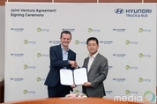 현대자동차가 스위스 수소 에너지기업 ‘H2 Energy(이하 H2E)’와 함께 합작법인을 설립하고 급증하는 유럽 친환경 상용차 시장 공략한다. 현대자동차는 양재동 사옥에서 현대차 상용사업본부장 이인철 부사장, 스위스 H2E 롤프 후버 회장 등 양사 관계자들이 참석한 가운데 합작법인 ‘현대 하이드로젠 모빌리티’ 설립을 위한 계약을 체결했다고 지난 15일 밝혔다. 합작법인 설립에 참여하는 H2E는 수소 생산·공급 솔루션 및 컨설팅을 제공하는 수소 에너지 전문 기업으로 지속가능한 이동성 확보와 전국 수소 충전 네트워크 구축 등을 목표로 2018년 5월 출범한 ‘스위스 수소 모빌리티 협회’의 사업개발 및 수행을 담당하고 있다. 현대자동차는 이번 계약으로 설립되는 합작법인 ‘현대 하이드로젠 모빌리티’에 2019년부터 2025년까지 7년간 매년 단계적으로 총 1600대 규모의 수소전기 대형트럭을 공급하게 된다. 현대차-H2E 합작법인 ‘현대 하이드로 모빌리티’는 ‘스위스 수소 모빌리티 협회’를 통해 스위스 지역의 다양한 대형 상용차 수요처에 현대차의 수소전기 대형트럭을 리스 형태로 제공하는 등 수소 에너지를 기반으로 한 다양한 사업을 검토할 계획이다.