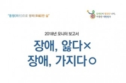 장애인먼저실천운동본부가 장애인식개선 및 인권 신장을 위한 2018 모니터 보고서 ‘장애, 앓다X 장애, 가지다O’를 출간했다. 언론모니터는 언론의 장애인에 대한 올바른 인식 형성을 통하여 장애인에 대한 대국민 인식개선을 목적으로 장애인먼저실천운동본부에서 1997년부터 지속적으로 실시하고 있으며 모니터 보고서는 1998년부터 매년 발간하고 있다. 장애와 관련한 올바른 용어 사용을 추구하기 위하여 제작된 2018 모니터 보고서 ‘장애, 앓다X 장애, 가지다O’는 한 해 동안 화두가 되었던 장애 관련 이슈를 중심으로 대중매체의 보도 경향과 함께 10개 종합일간지, 8개 경제지 및 45개 지방일간지를 모니터한 결과를 담고 있으며 외부 필진이 참여해 ‘2018년 장애 관련 이슈와 언론 보도의 흐름‘, ‘2018년 이달의 좋은 기사 & 올해의 좋은 방송’, ‘2018년 장애 차별 용어 모니터링 분석’ 등 장애와 관련된 다양한 이슈를 분석하였다. ‘2018년 장애 관련 이슈와 언론 보도의 흐름’에서 이인영 조사관은 장애등급제, 장애인활동지원, 탈시설, 남북장애인 등 7개의 이슈를 다루었다. 그중 2018년 언론에 가장 많이 노출된 주제는 ‘장애인활동지원’이